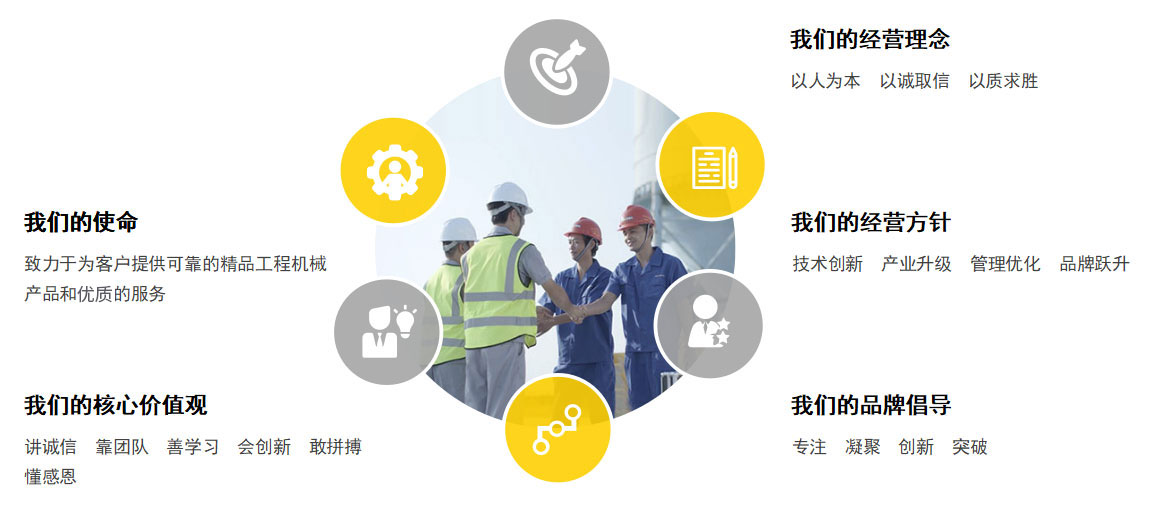以員工、客戶、合作夥伴為晉工發展之根本,坦誠相待、互信互利,實現與多方的和諧共生、共贏。在不斷發展中自主創新,以客戶的需求為晉工發展創新的源動力,不斷推出性能優良、品質可靠的產品來贏得市場,也贏得更多客戶的信賴。做精品,負責任,與第三世界國家的建設同步。做優秀的民族品牌。