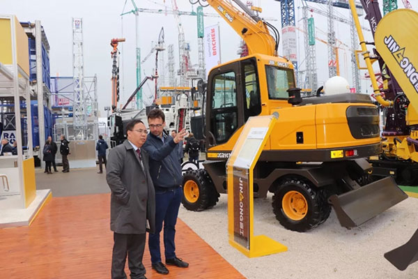 FS.1105/7晉工展區,JGM757KN裝載機帥氣的外形,JGM781FT叉裝機夯實的構架,JGM910LN、JGM9075LN輪(lun)式(shi)挖(wa)機(ji)的(de)靚(liang)麗(li)靈(ling)活(huo),都(dou)讓(rang)晉(jin)工(gong)成(cheng)為(wei)這(zhe)片(pian)區(qu)域(yu)的(de)人(ren)氣(qi)擔(dan)當(dang),炫(xuan)酷(ku)的(de)產(chan)品(pin)造(zao)型(xing),精(jing)益(yi)求(qiu)精(jing)的(de)產(chan)品(pin)技(ji)術(shu),吸(xi)引(yin)眾(zhong)多(duo)海(hai)外(wai)觀(guan)展(zhan)商(shang)與(yu)買(mai)家(jia)的(de)駐(zhu)足(zu)和(he)濃(nong)厚(hou)的(de)興(xing)趣(qu)。近(jin)距(ju)離(li)的(de)產(chan)品(pin)展(zhan)示(shi),麵(mian)對(dui)麵(mian)的(de)溝(gou)通(tong)交(jiao)流(liu),他(ta)們(men)眼(yan)裏(li)的(de)晉(jin)工(gong)是(shi)一(yi)家(jia)亮(liang)眼(yan)的(de)中(zhong)國(guo)工(gong)程(cheng)機(ji)械(xie)製(zhi)造(zao)商(shang)企(qi)業(ye)、是頗具性價比的產品、是優秀的專業團隊......