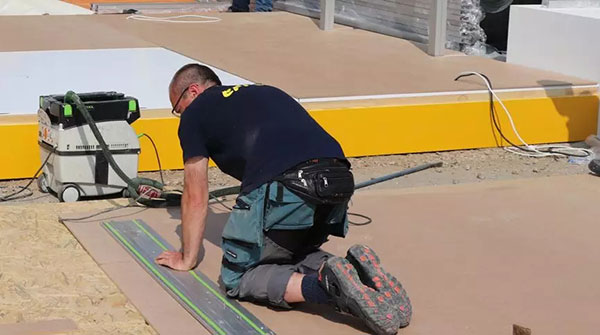 【如火如荼準備展台搭建的工作人員】